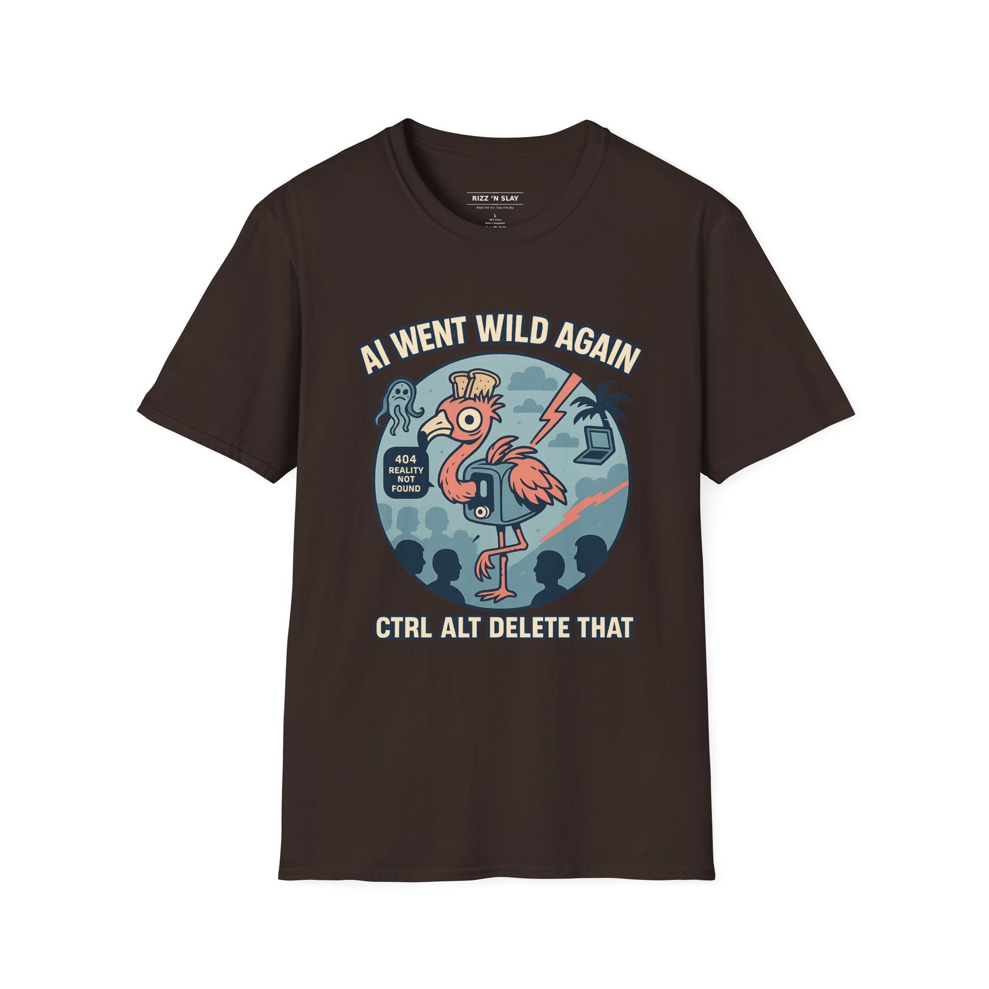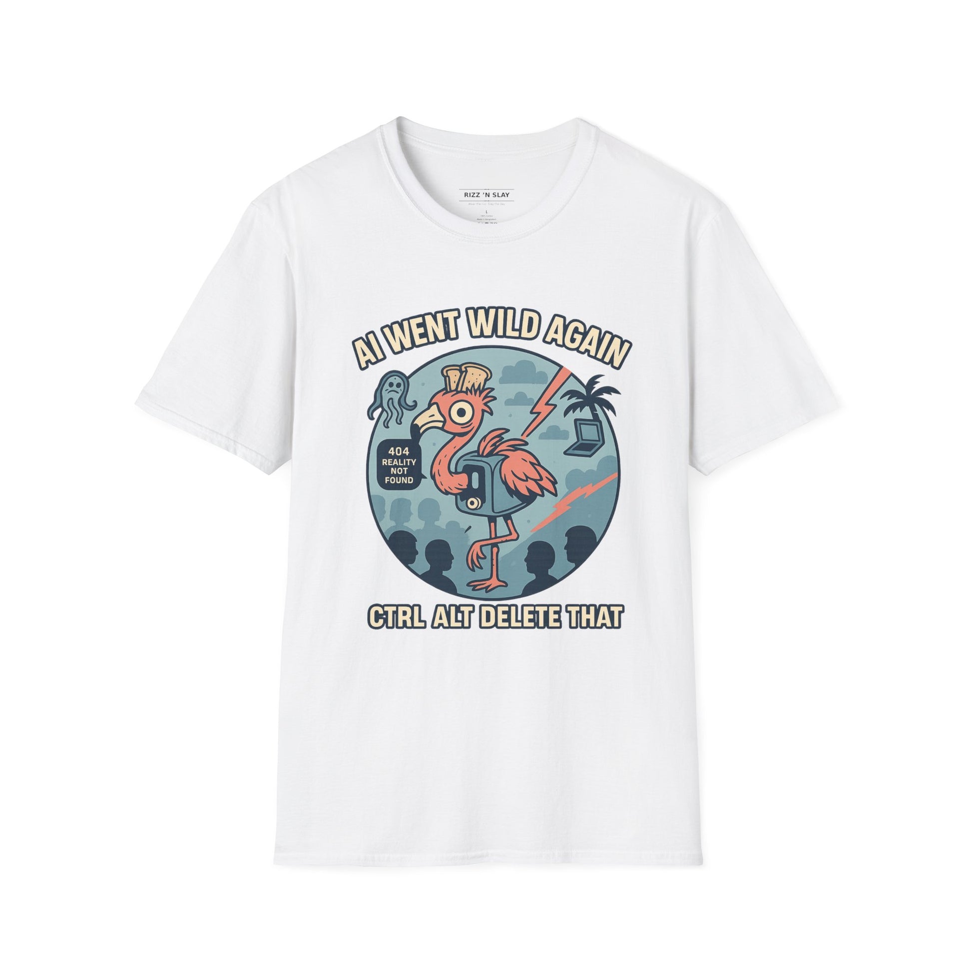 AI Gone Wild T-Shirt, Quirky Flamingo Tee