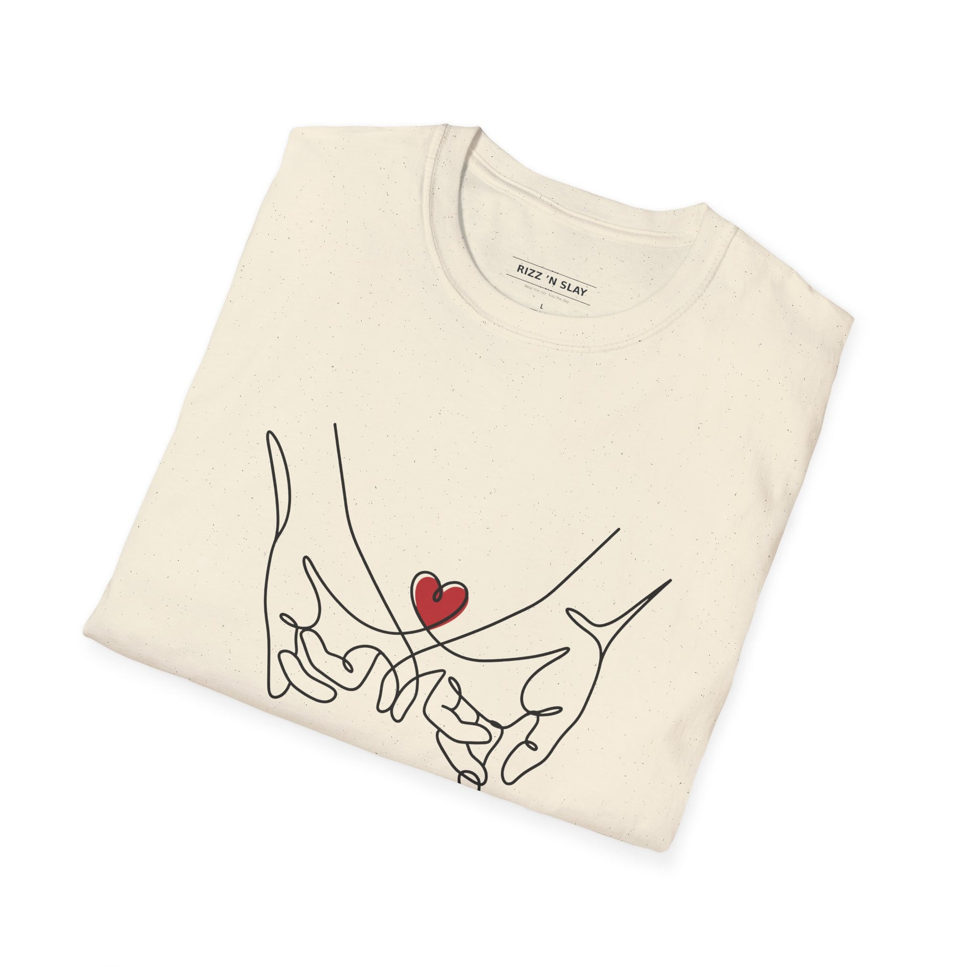 Two hands reach across a single unbroken line, meeting at a small, bright red heart — a quiet emblem of loyalty, inside jokes, and the kind of friendship that holds through everything. This lightweight tee drapes easily over coffee dates, late-night drives, and weekend markets. It’s understated and modern, so the connection between friends is the focus, not the clothes. Wear it to celebrate a friendship anniversary, Galentine’s brunch, or when you two want matching looks that feel genuine and effortless. The soft ring-spun cotton and clean crew neck sit comfortably under jackets or on their own, so the shirt moves with your day — like the dependable friend it represents.