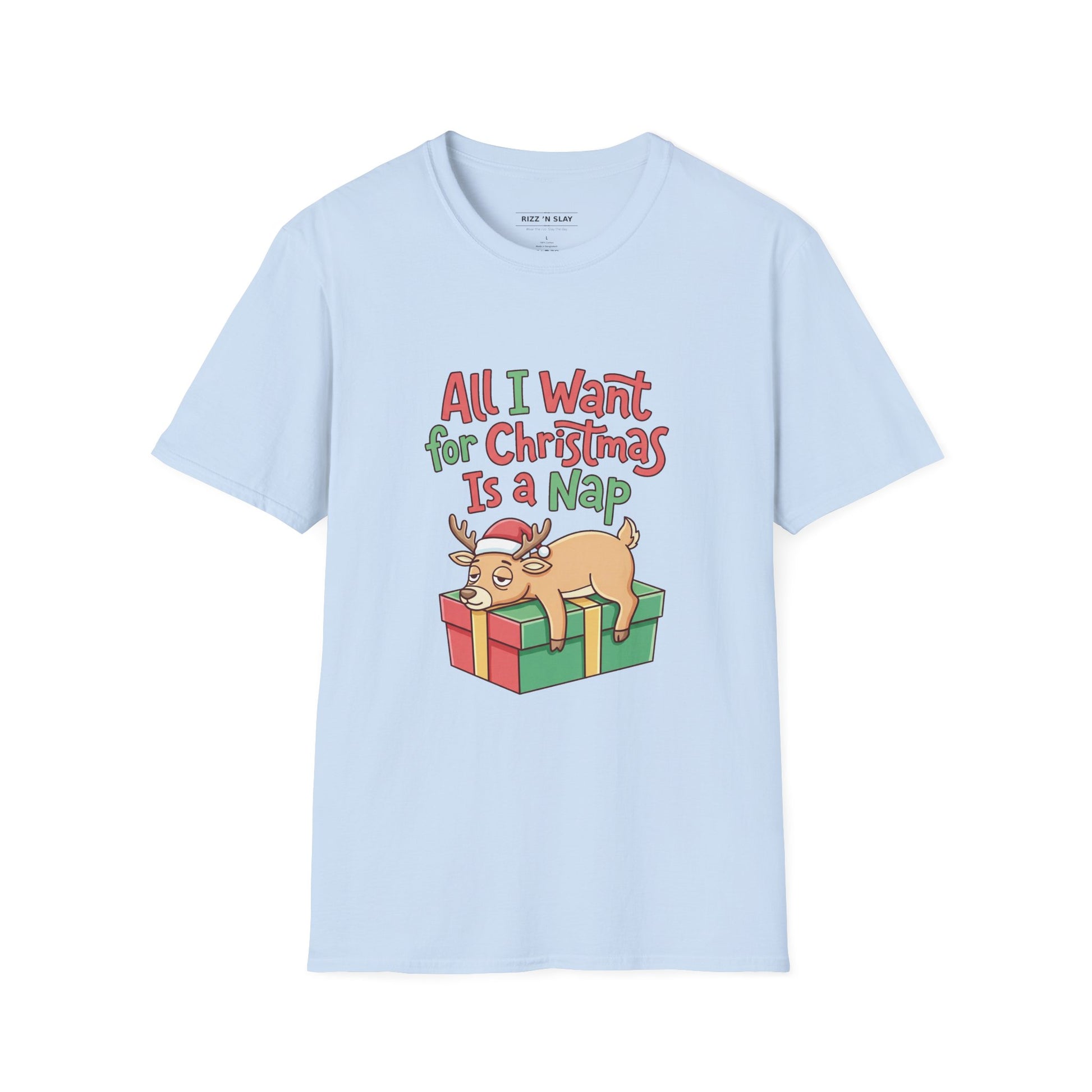Christmas Nap T-Shirt — "All I Want for Christmas Is a Nap" Cute Reindeer Holiday Tee