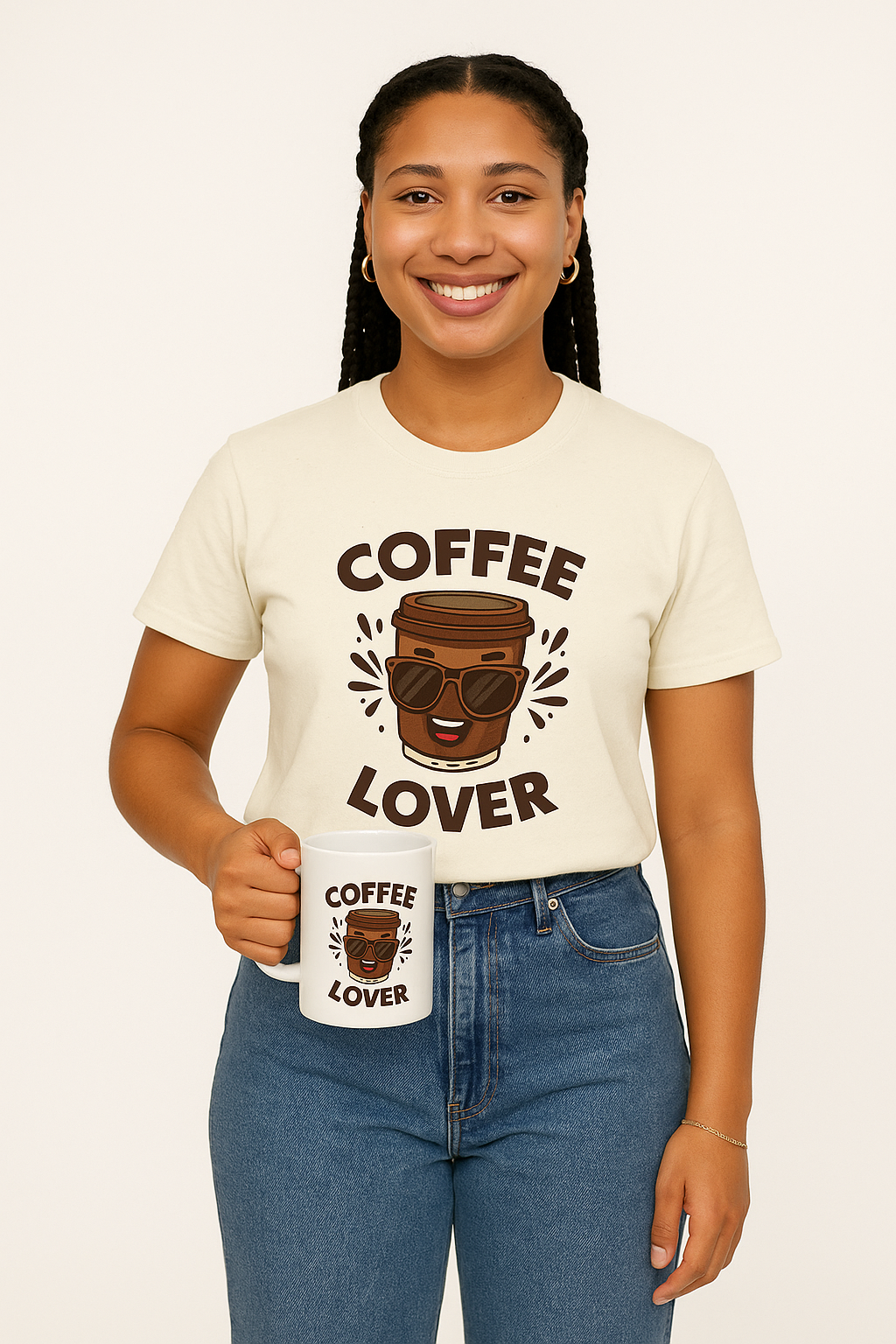 Elevate your daily coffee ritual with the Coffee Lover Bundle, designed for true aficionados. This set pairs a soft, breathable cotton t-shirt featuring a playful, shaded coffee cup illustration with a matching sturdy ceramic mug that’s microwave and dishwasher safe. The unisex design makes it a versatile choice for any coffee enthusiast, whether at home or the office. Enjoy comfort and style while showcasing your passion for coffee—perfect as a thoughtful gift or a personal treat to start your day with confidence.