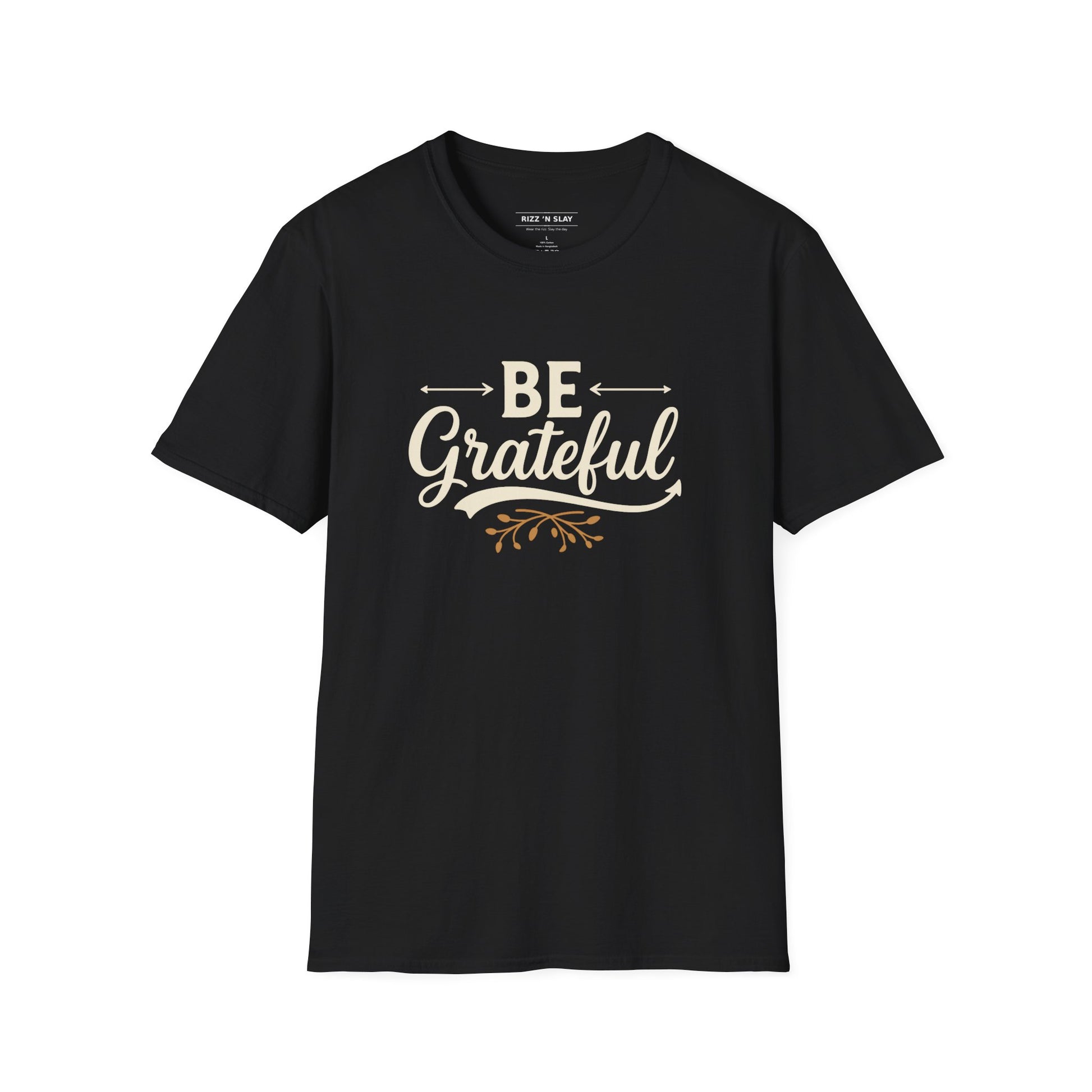 Embrace gratitude with this cozy Unisex Softstyle T-Shirt, perfect for those who value comfort and style. Featuring a beautifully crafted 'Be Grateful' design, this shirt radiates positivity and warmth, making it an ideal addition to your everyday wardrobe. Whether you're out with friends, relaxing at home, or attending a casual gathering, this versatile tee seamlessly fits into any occasion, layering well under a jacket or standing out on its own. Aimed at both men and women, it's perfect for anyone who wants to spread good vibes. Ideal for celebrations such as Thanksgiving, meaningful gatherings, or just because—you'll wear it proudly to express your values and gratitude every day!