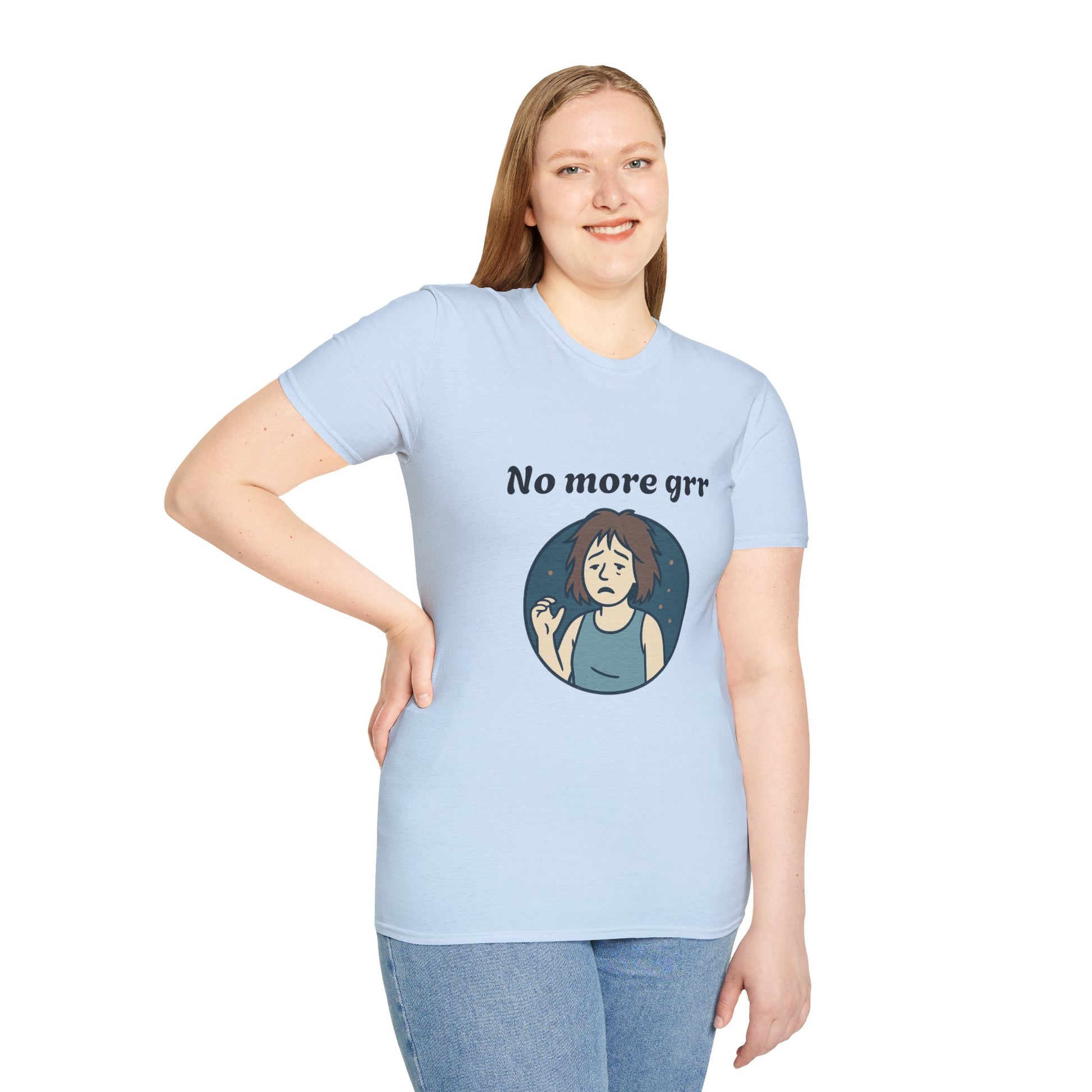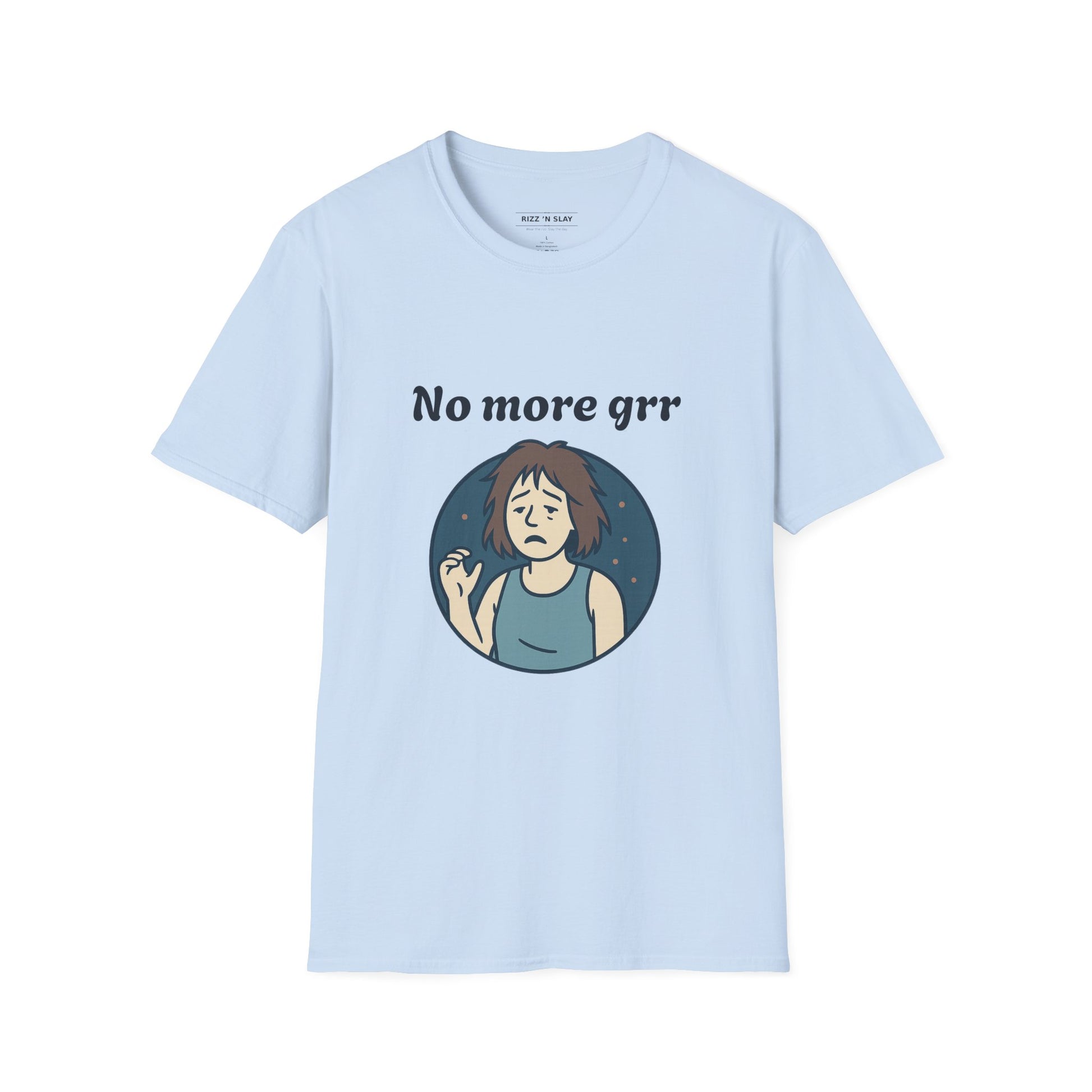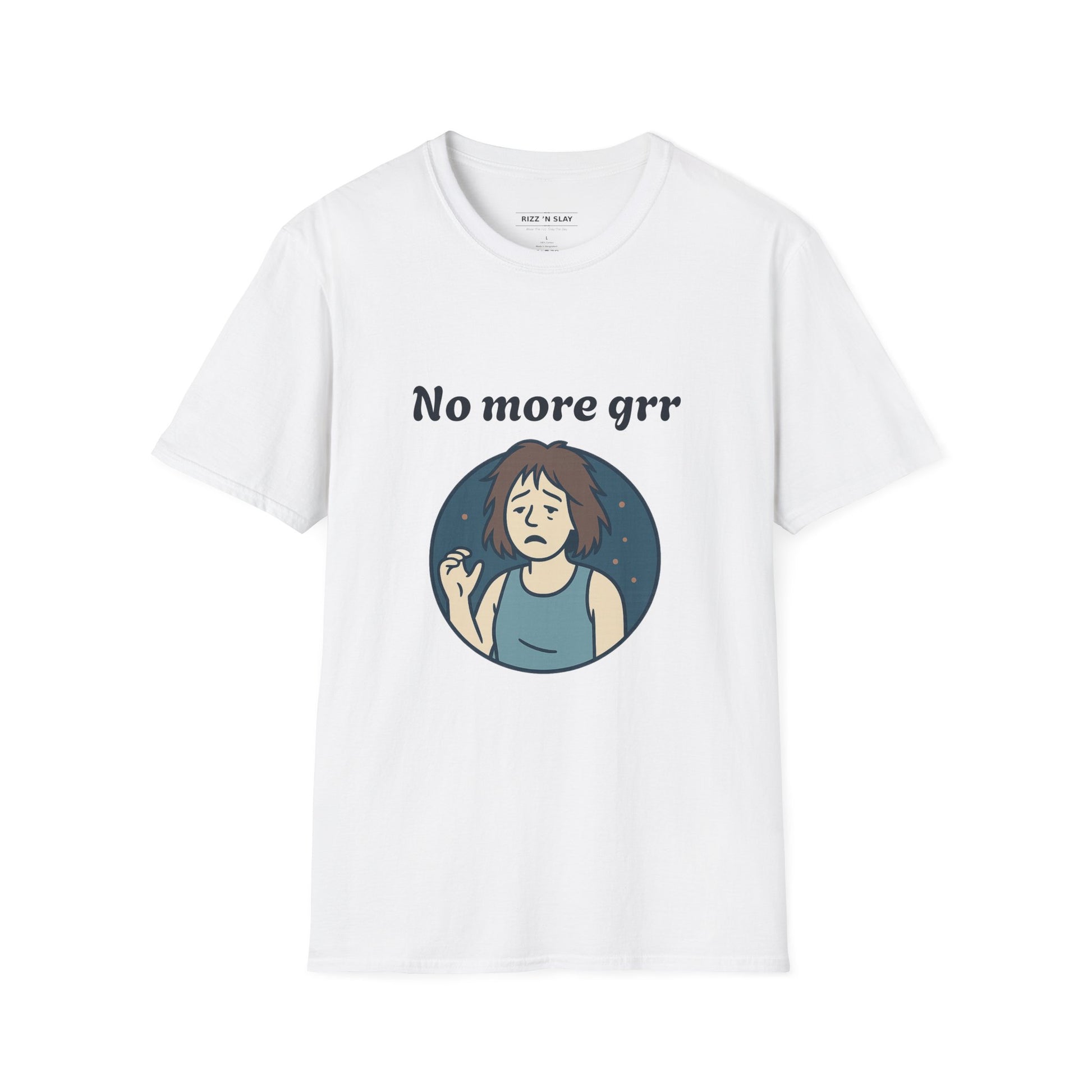 No More Grr Graphic T-Shirt — Playful Messy-Hair Roar Off Duty Tee