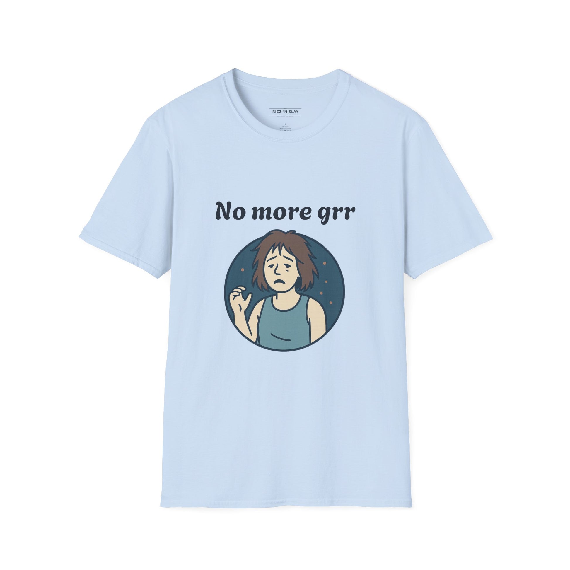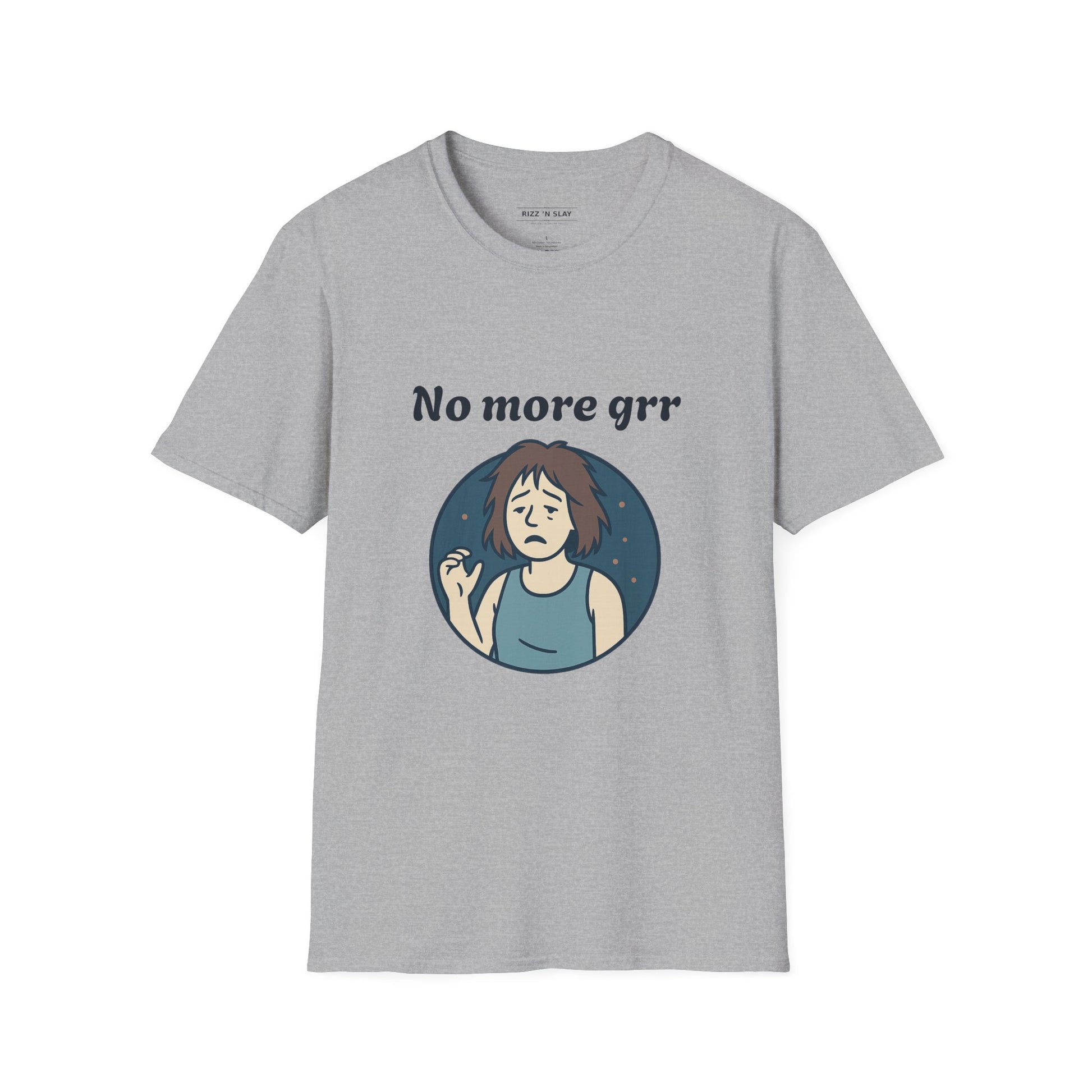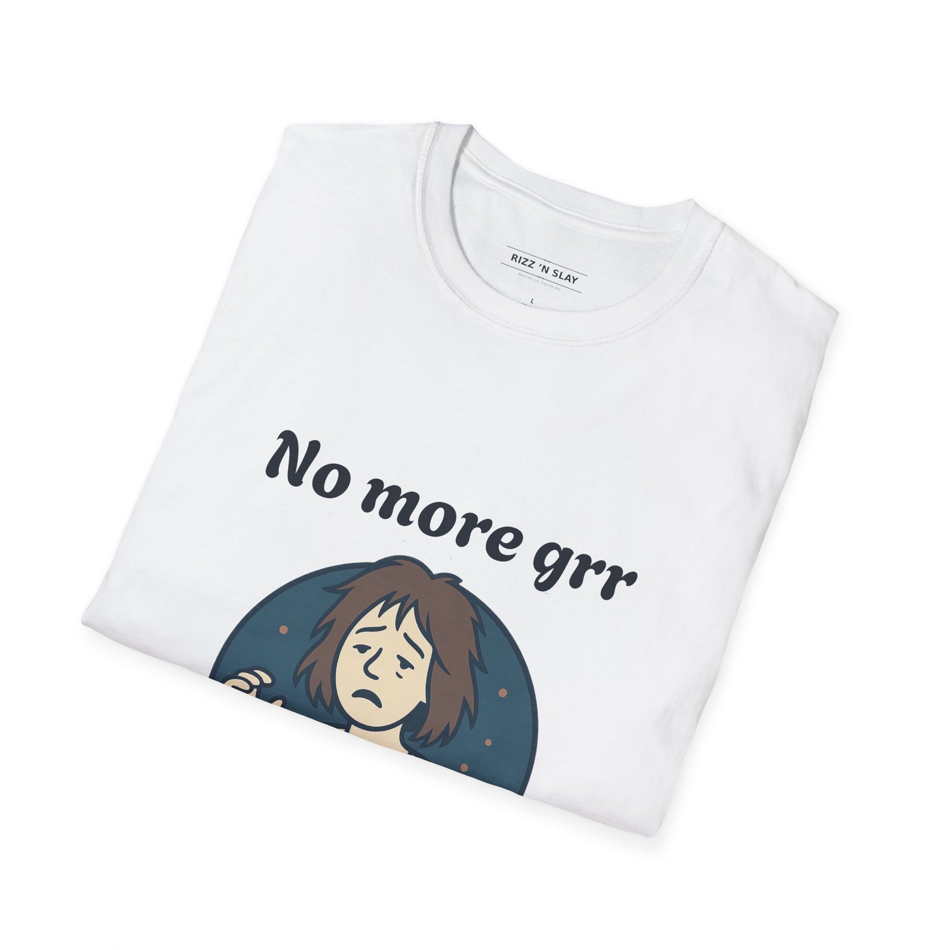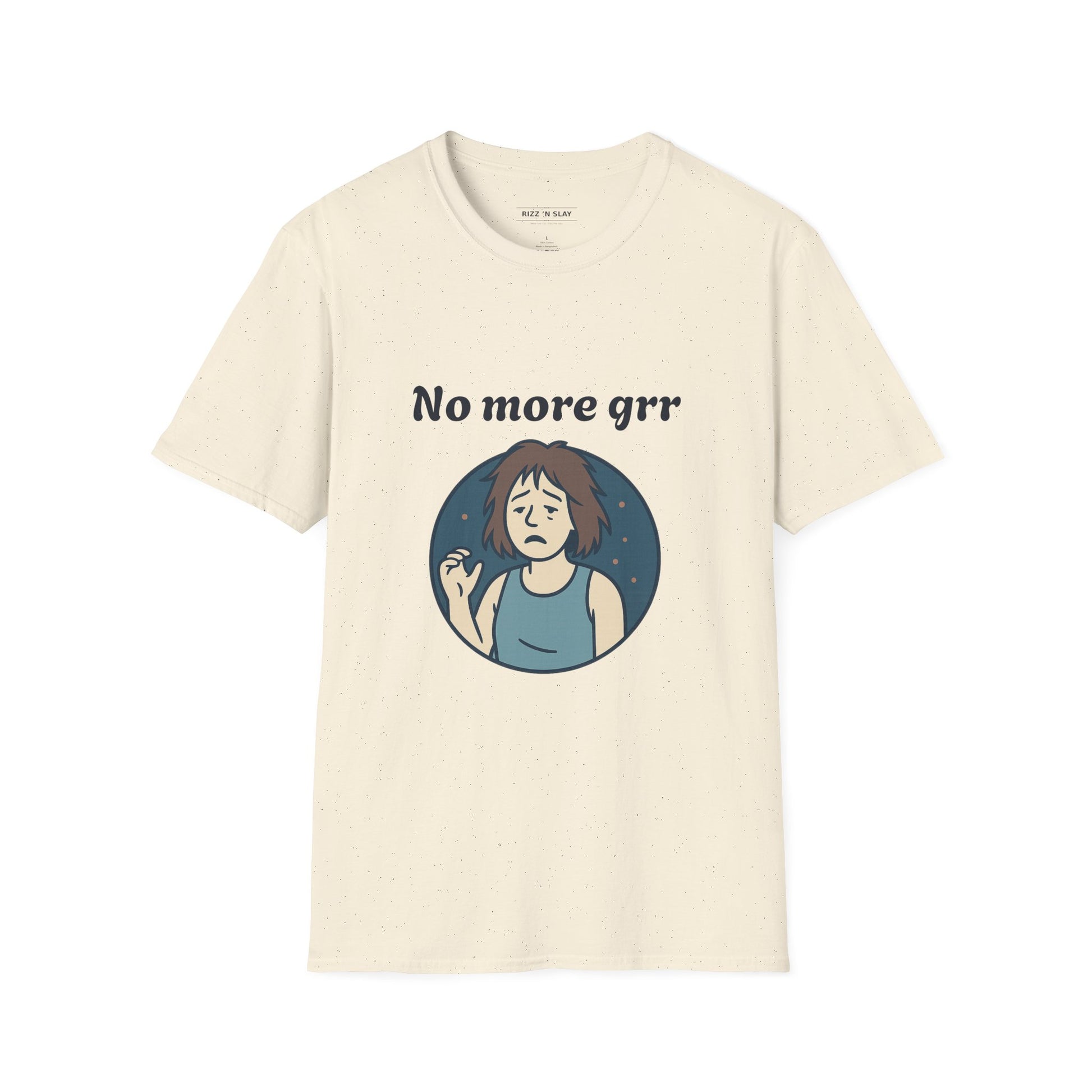 The roar is off duty. A playful nod to the “Dame un Grr” trend, this tee features a faceless, messy-hair character and the headline no more grr—perfect for the days when the claw isn’t clawing. Flat vector art, thick outlines, and high contrast keep the graphic crisp on both light and dark shirts.