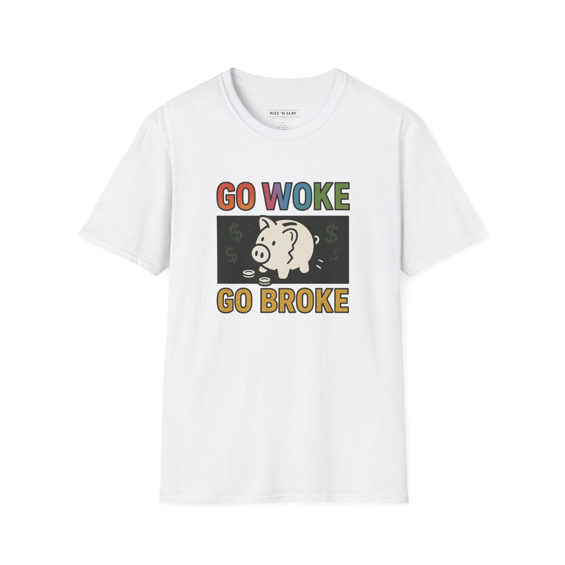 Witty Graphic T-Shirt, Humor Tee, Go Woke Go Broke Shirt, Gift for Political Humor Lovers, Casual Statement Tee, Weekend Wear